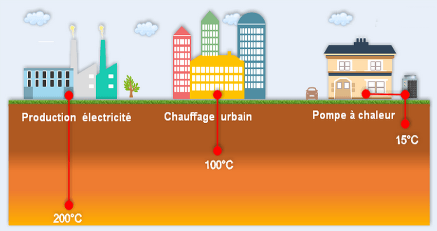 Voilà une chaleur disponible 24 heures sur 24, 365 jours par an, qui ne dépend ni du climat, ni des saisons, ni du jour ou de la nuit. Pour peu qu’on sache correctement l’exploiter, nous avons donc sous les pieds une réserve d’énergie quasi-inépuisable car réapprovisionnée en permanence ! De plus, elle permet d’être indépendant au niveau énergétique par rapport à un pays tiers, ce qui n’est pas le cas aujourd’hui avec les énergies fossiles. Avec la géothermie à très basse (température inférieure à 30° C) et basse énergie (température entre 30 et 90° C), on récupère la chaleur du sous-sol pour l’exploiter directement ou grâce à des pompes à chaleur. Elle servira à chauffer des maisons, des immeubles, des piscines.